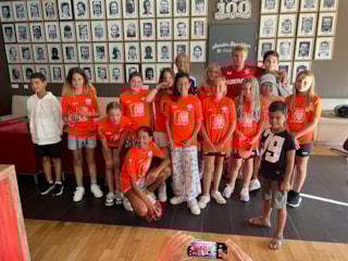Na de wedstrijd, waarbij de meiden enigszins onder de indruk waren van de uitsupporters waar ze vlakbij zaten, mochten ze Sem in het spelershonk ontmoeten.