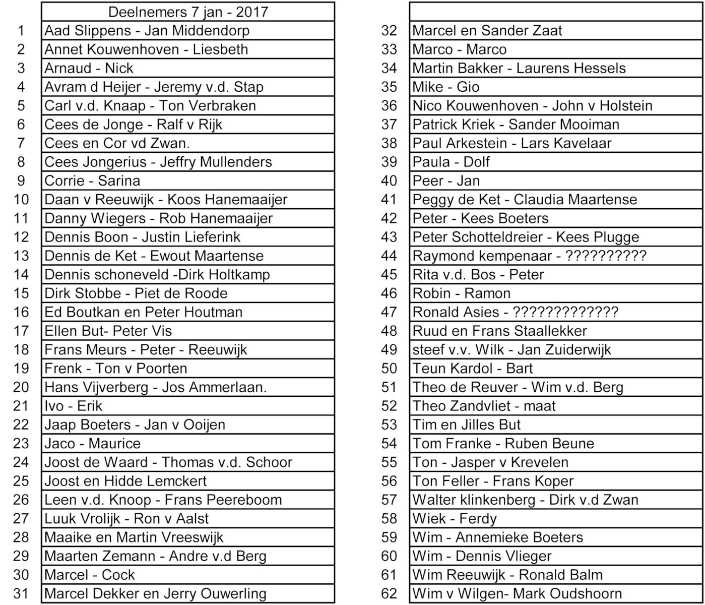 Opgeven bij Harry of Jan.