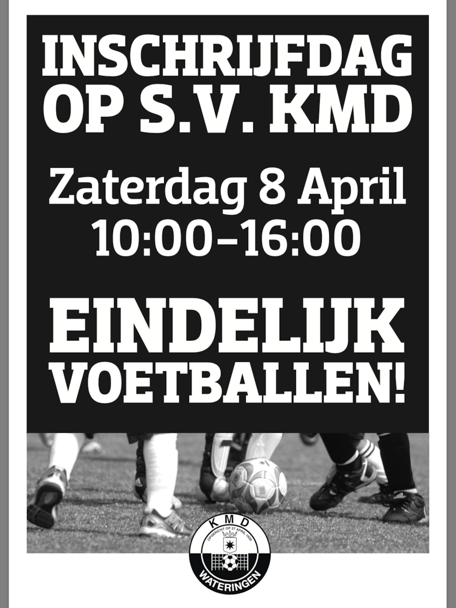 Altijd al willen voetballen? Kom je dan inschrijven op zaterdag 8 april a.s. van 10.00 tot 16.00 uur op KMD.