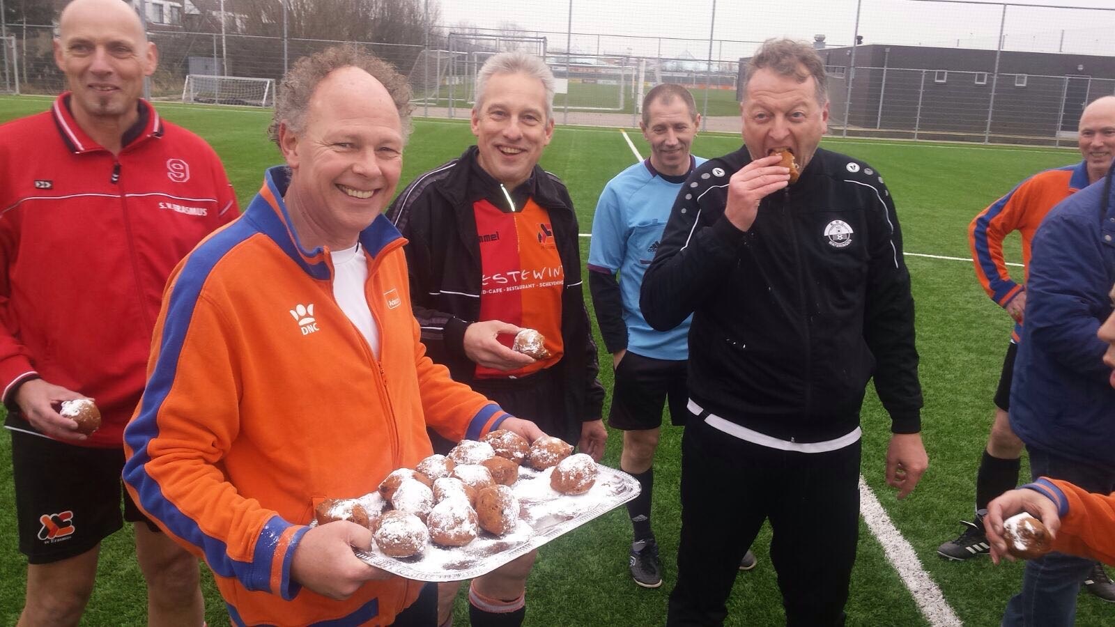 Robbie van Zon is 55 jaar en speler bij onze Veteranen. In de veteranen app heeft hij aan het begin van deze week aangekondigd dat hij met onmiddellijk ingang gaat stoppen met voetballen. Het vele blessureleed komt hij niet meer te boven. De aftakeling eist zijn tol en aan een mooie voetbalcarrière komt een eind. Afgelopen zaterdag was de traditionele oliebollenwedstrijd, tegen “de vrienden” van de sv Erasmus, zijn laatste wedstrijd.