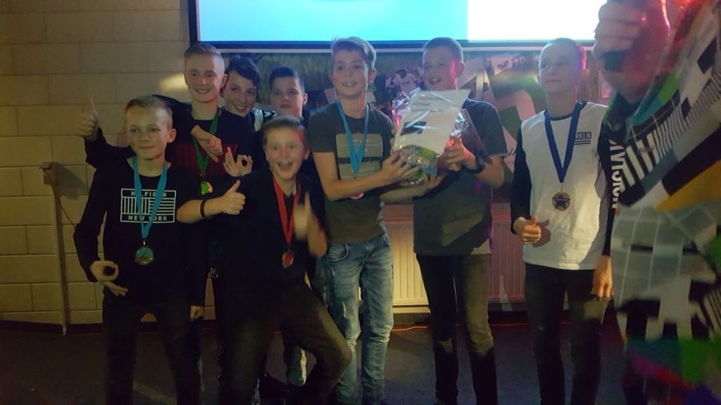 Ik ben zo blij met onze feestcommissie, wat een mooie organisatie was het bovengenoemde feest. Hulde en een diepe buiging mede namens alle aanwezige jeugdleden en hun ouders. Bedankt! Mooi om te zien dat ons jeugdbestuur “een goeie groep” is. Ze waren er allemaal en de jeugdtrainers en Mike Boutkan! Wat heb ik genoten van deze gast. Vader Ed is een stoere loodgieter en dan is het zo mooi om te zien dat zijn zoon op de dansvloer tussen de kids staat te springen. Ik zeg; geschikt als leraar of luizen vader.