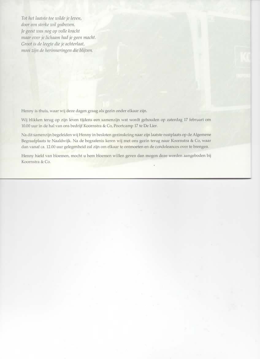 Ik herinner me Henny als een aimabele en betrouwbare steunpilaar van onze vereniging aan wie we veel dank verschuldigd zijn.