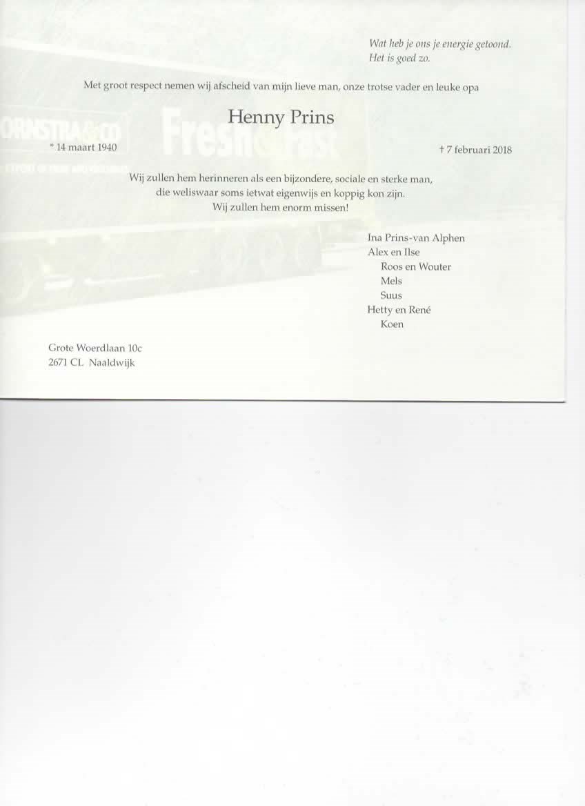 In memoriam Henny Prins.