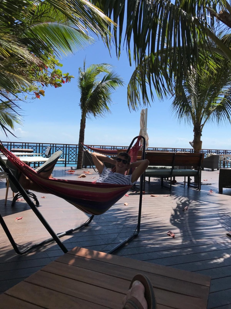 Daar aangekomen ging hij eerst lekker in een hangmatje liggen (zie foto) maar daar blijft het natuurlijk niet bij. Inmiddels is hij begonnen met zijn vrijwilligerswerk op een school en in later stadium gaat hij in een ziekenhuis werken. Daarna zal hij dit afwisselend tussen school en ziekenhuis blijven doen totdat hij weer terugkomt,
