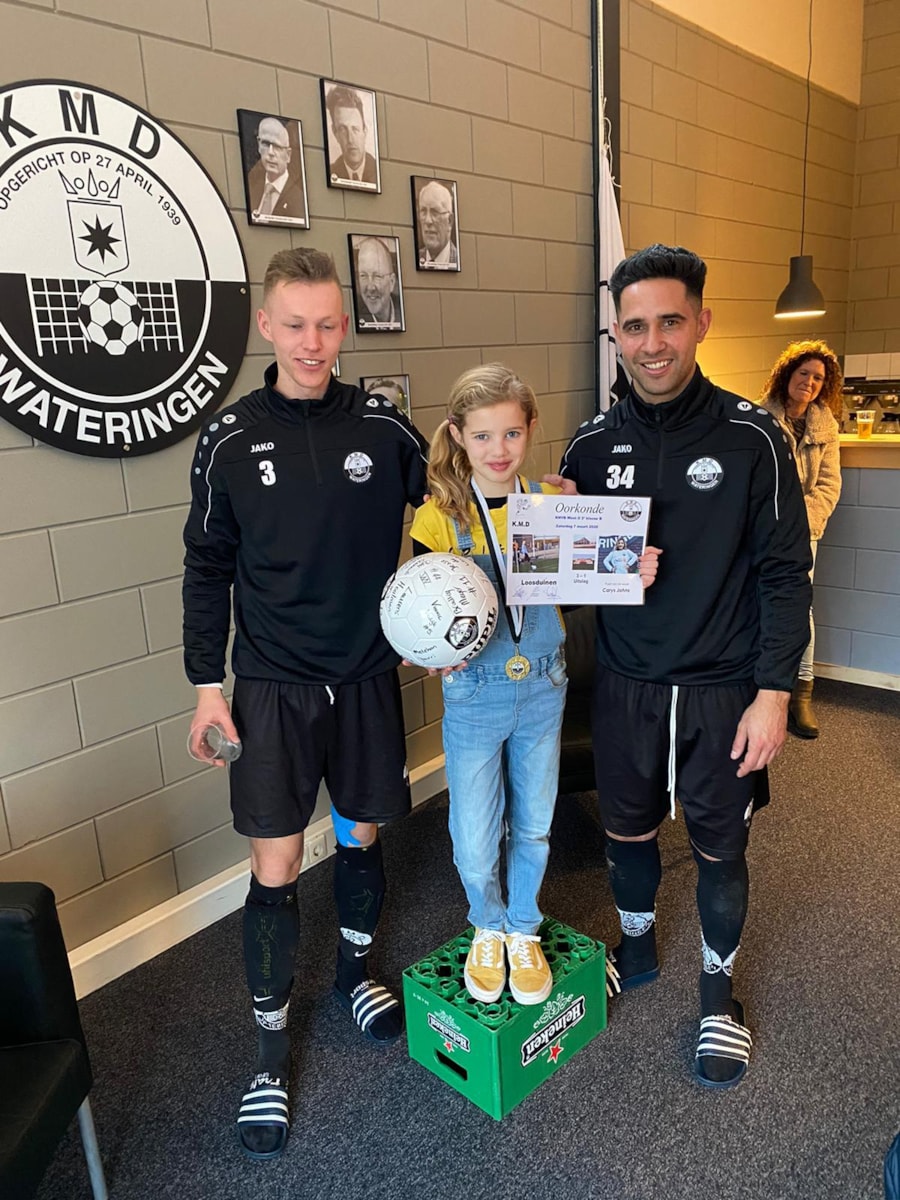 Terug naar onze jongens. Wat was het weer een ongemeen spannende wedstrijd tegen Loosduinen. Uit was er een nipte overwinning. Loosduinen had goed naar de ranglijst gekeken en hanteerde de Getafe-tactiek met veel mensen achter de bal. Alle trucen werden uit de doos gehaald, er lagen onophoudelijk veel spelers op de grond waardoor de wedstrijd werd ontregeld. Dat is lastig voetballen hoor! Blijf dan maar eens rustig. Gelukkig bleven de spelers van KMD dat. Ik merkte aan mijzelf dat ik een voetballiefhebber ben en kom kijken voor een pot voetbal. En zeker niet voor spelers die de boel uitbuiten en de scheidsrechter in de maling nemen. Waar ik een aantal weken geleden “het vingertje” opstak tegen het herhaaldelijk maken van opmerkingen van “onze bank” tegen de scheidsrechter, moet ik nu mezelf corrigeren. Ik vergeleek verbaal Loosduinen met Getafe en de toneelstukjes die de spelers van dit elftal tegen Ajax een aantal weken geleden opvoerden. Dat kan natuurlijk niet als je een voorbeeldfunctie hebt. Sorry, ik moet mijn emoties en het supportersgehalte in mij beter in toom houden. Gelukkig maakten Bradley Meijer en Jesse de Waard het verschil in doelpunten en zegevierde de ploeg die wilde voetballen. Al met al een moeizame maar verdiende uitslag.