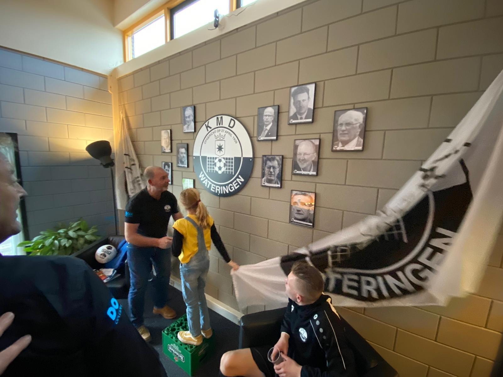 Het was een drukte van belang in de bestuurskamer, deze zaterdag. Onze ontvangstmanager Piet Hollaar is wederom in het ziekenhuis opgenomen vanwege hartklachten. Mogelijk wordt hij donderdag as. in Utrecht wederom aan het hart geopereerd. Geen sinecure en we houden nauw contact over de vorderingen. Als Piet er niet is, betekent dat wel een paar extra taken. Gelukkig kun je altijd rekenen op Huib Bakker en Jan Middendorp, die ervoor zorgen dat de gasten (scheidsrechter, bestuur van de tegenpartij, de pupil van de week, sponsoren etc.) niets tekort komen. Vandaag was Jumbo Koornneef op bezoek om het gloednieuwe sponsorcontract te ondertekenen. Carys Johns was onze pupil van de week en samen met mama Heidine (oud KMD dames) genoten zij van de KMD-middag en oud-voorzitter, sponsor, erelid en huidig leider van KMD1, Hans Verschoor, onthulde de collage met de afbeeldingen van de oud-voorzitters van de vereniging. De kritiek was dat de oude opstelling wel leek op die van een mortuarium en old school niet meer paste in de opgeknapte bestuurskamer. Gelukkig wist de creatiefste geest van de vereniging, Thomas van der Schoor van ontwerpbureau Mooi Rood, er werkelijk een waar kunststuk van te maken. Jan Middendorp en Martin den Dulk boorden de gaten en voilà, we kunnen weer vooruit. Hoe het eruit ziet? Komt u gerust eens kijken op de eerste verdieping. En wat deed Prins Constantijn op KMD?