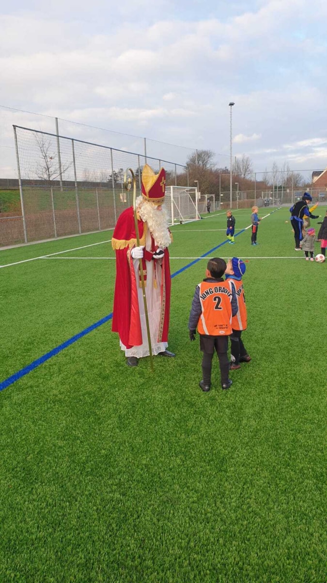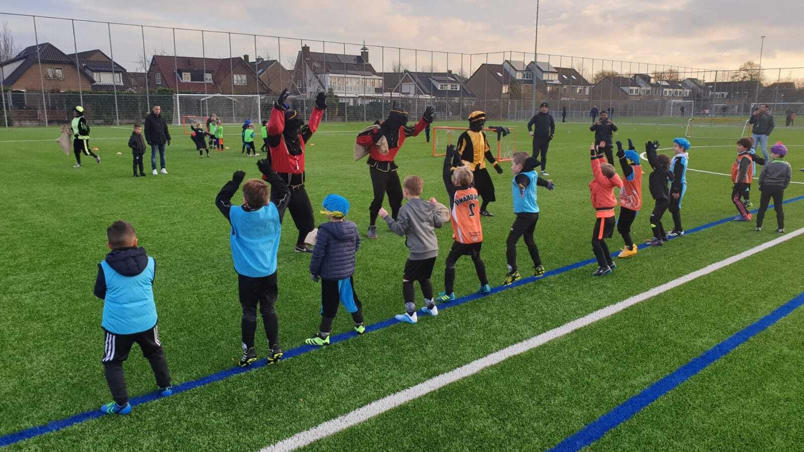 Maar vanochtend, op de valreep van het Sinterklaasfeest, was hij er dan toch met zijn Pieten. Terwijl de onderhoudsploeg weer druk in de weer was, werden we opgeschrikt door een luid kabaal en overvallen door de Sint en zijn gevolg! Veel aandacht hadden ze niet voor de volwassenen, er werd direct gevraagd waar ze de jongste kinderen van KMD konden vinden. Deze waren net begonnen op veld 4 en dus gingen de Sint en zijn Pieten zo snel mogelijk daar naartoe!