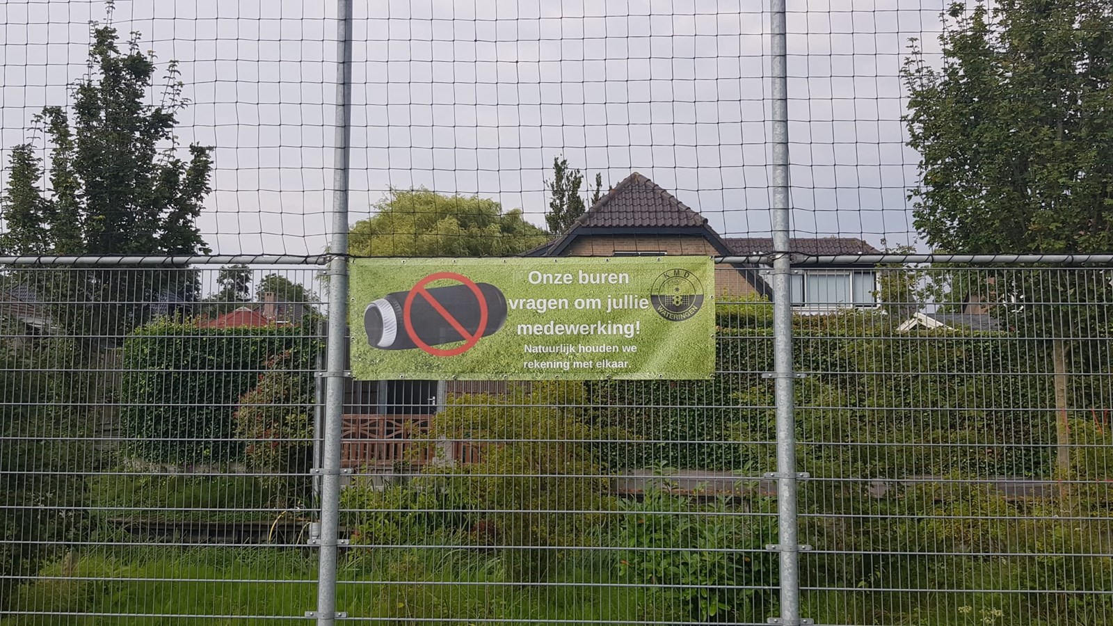 Daarom zijn de doelen aan de bewonerskant weggehaald en wordt iedereen verzocht aan de wegkant te gaan voetballen en hebben we een banner opgehangen met daarop nogmaals het verbod op het gebruik van audio apparatuur.