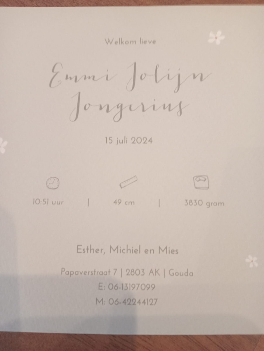 Van harte gefeliciteerd met de geboorte van jullie dochter en zusje.