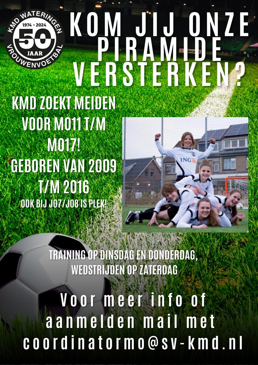KMD is op zoek naar aanvulling van de meidenteams (MO11 t/m MO17)