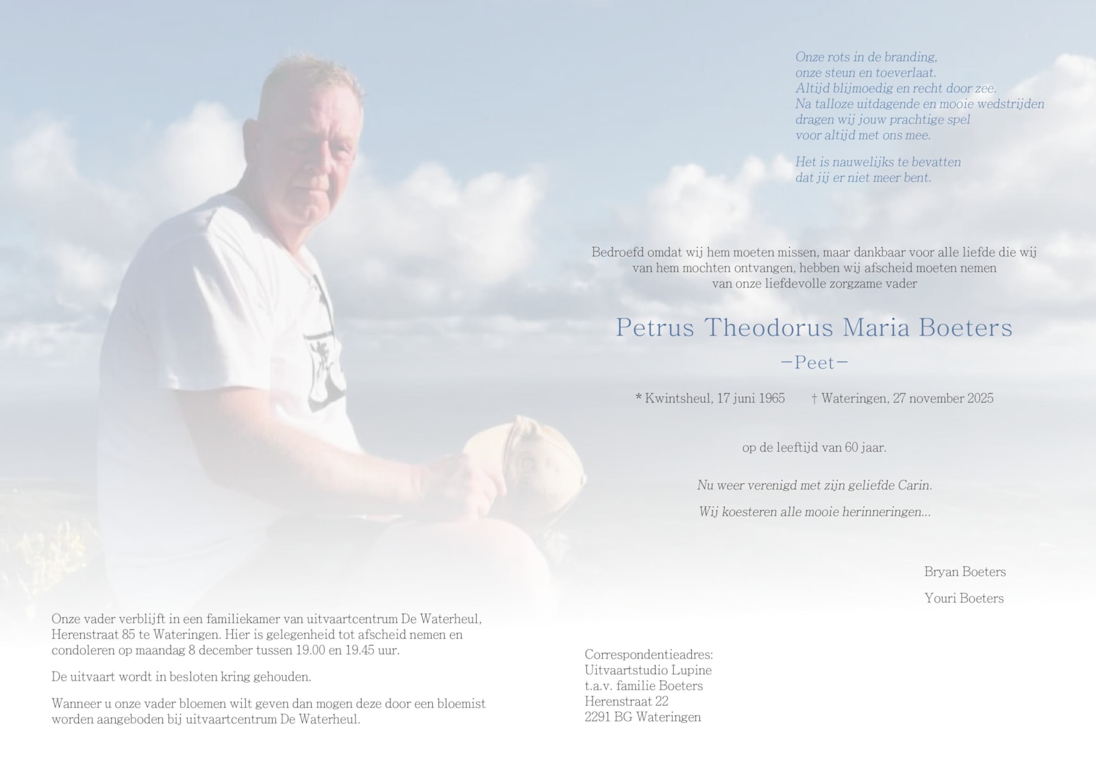 Peter heeft zijn strijd op veel te jonge leeftijd moeten staken.