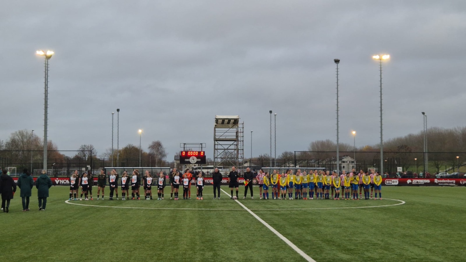 Door loting werd bepaald welk team met wie het veld op mocht; onze meiden met Jong Utrecht. Ze hadden natuurlijk gehoopt met Sparta maar het mocht de pret niet drukken.