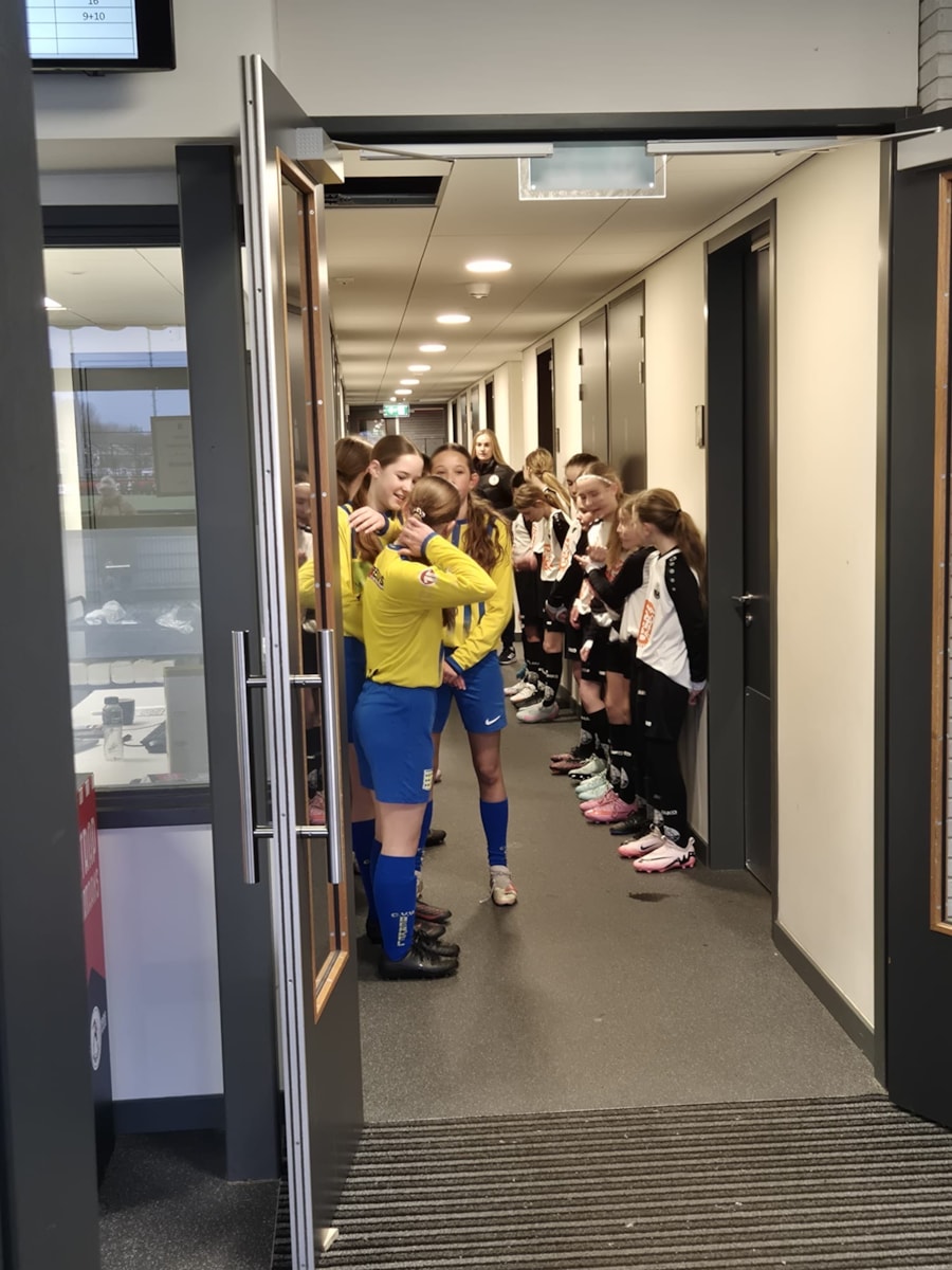 Samen met de MO13 van CCV Berkel, kregen de meiden eerst een rondleiding van een aantal speelsters van Sparta die door een blessure niet met de wedstrijd mee konden doen.